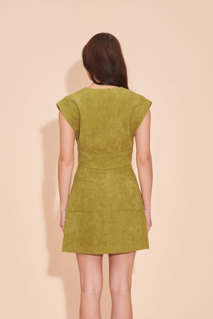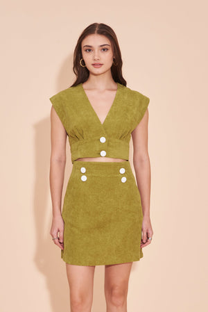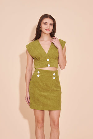 "SUNSHINE" High Waisted Mini A Line Skirt In Olive Corduroy