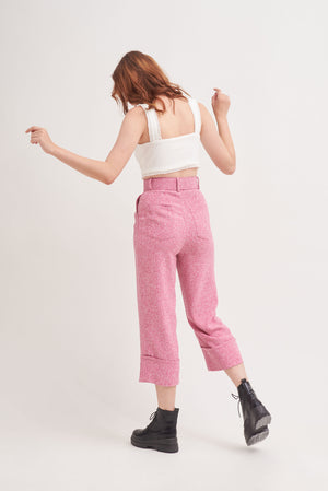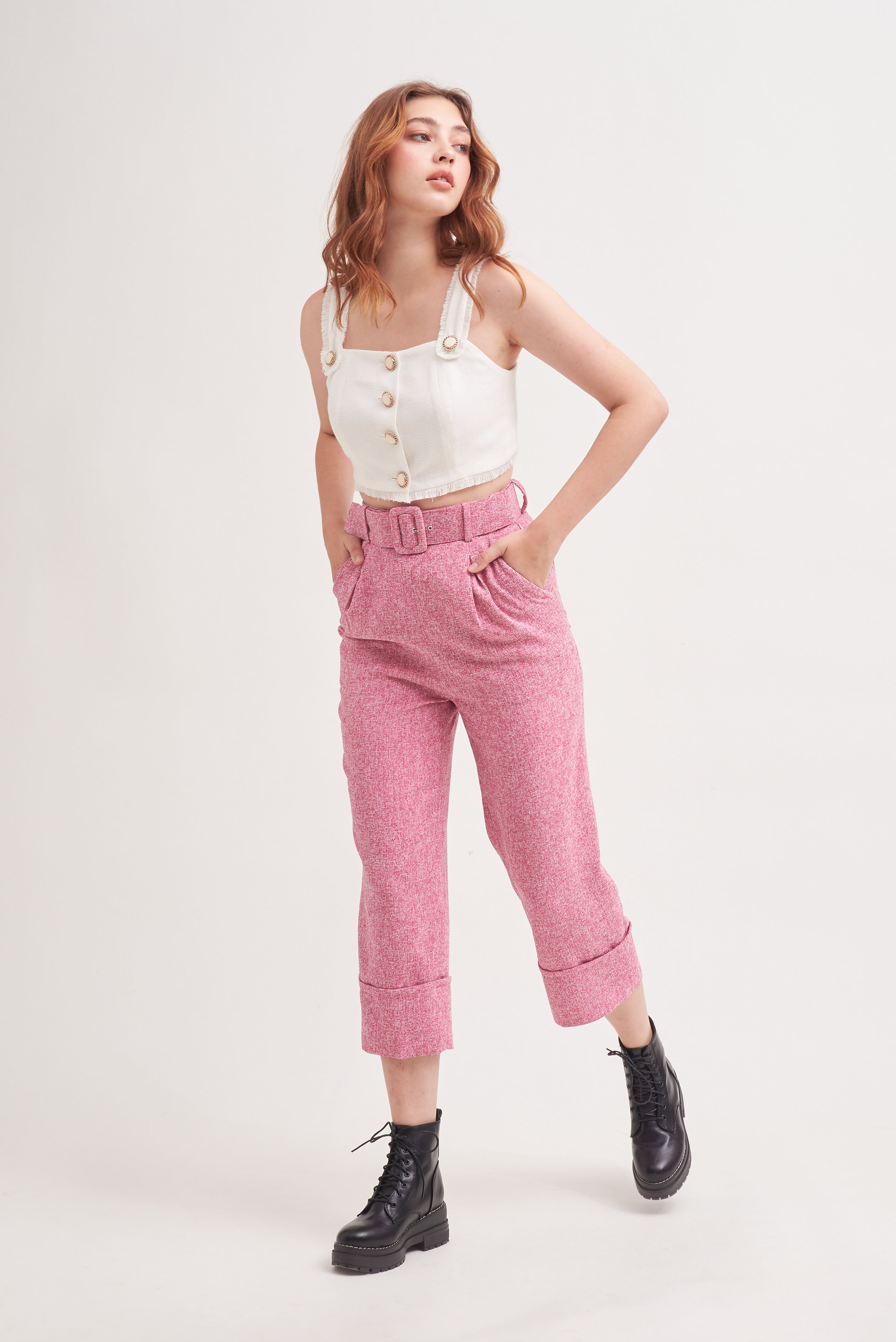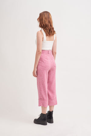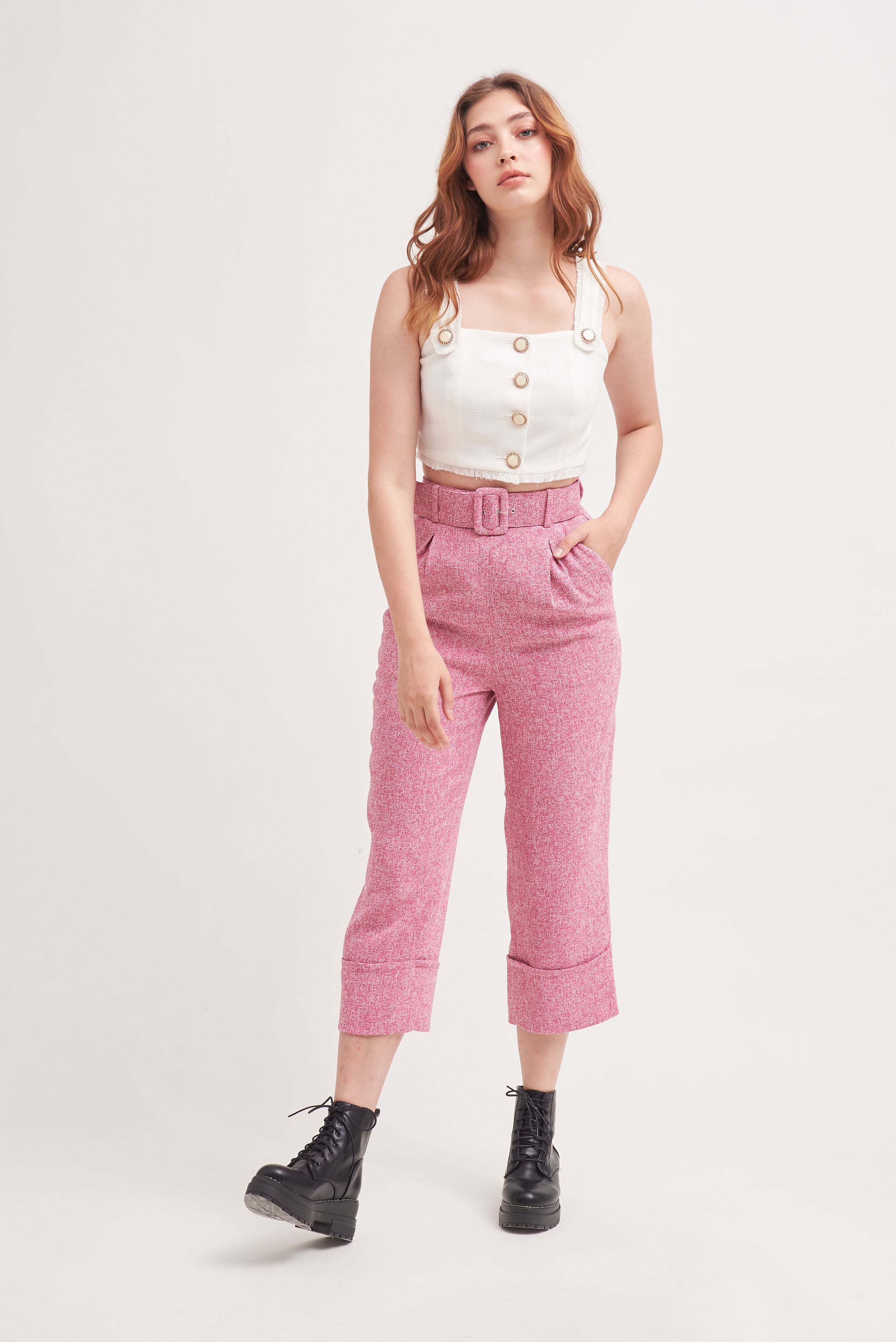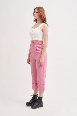 THINK OUTSIDE THE BOX | High Waisted Culottes In Pink Tweed With Belt