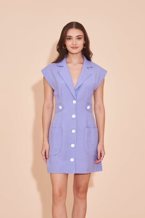"HOPE" Cotton Linen Tailored Tuxedo Vest Dress in Lilac