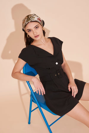 Home Featured ON A HIGH NOTE | Boat Neck Short Jumpsuits in Black With White Contrast Buttons