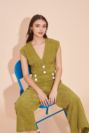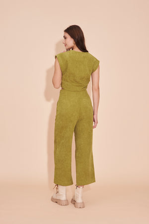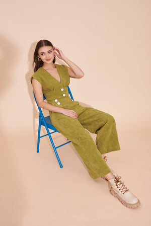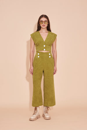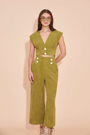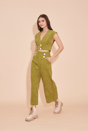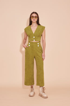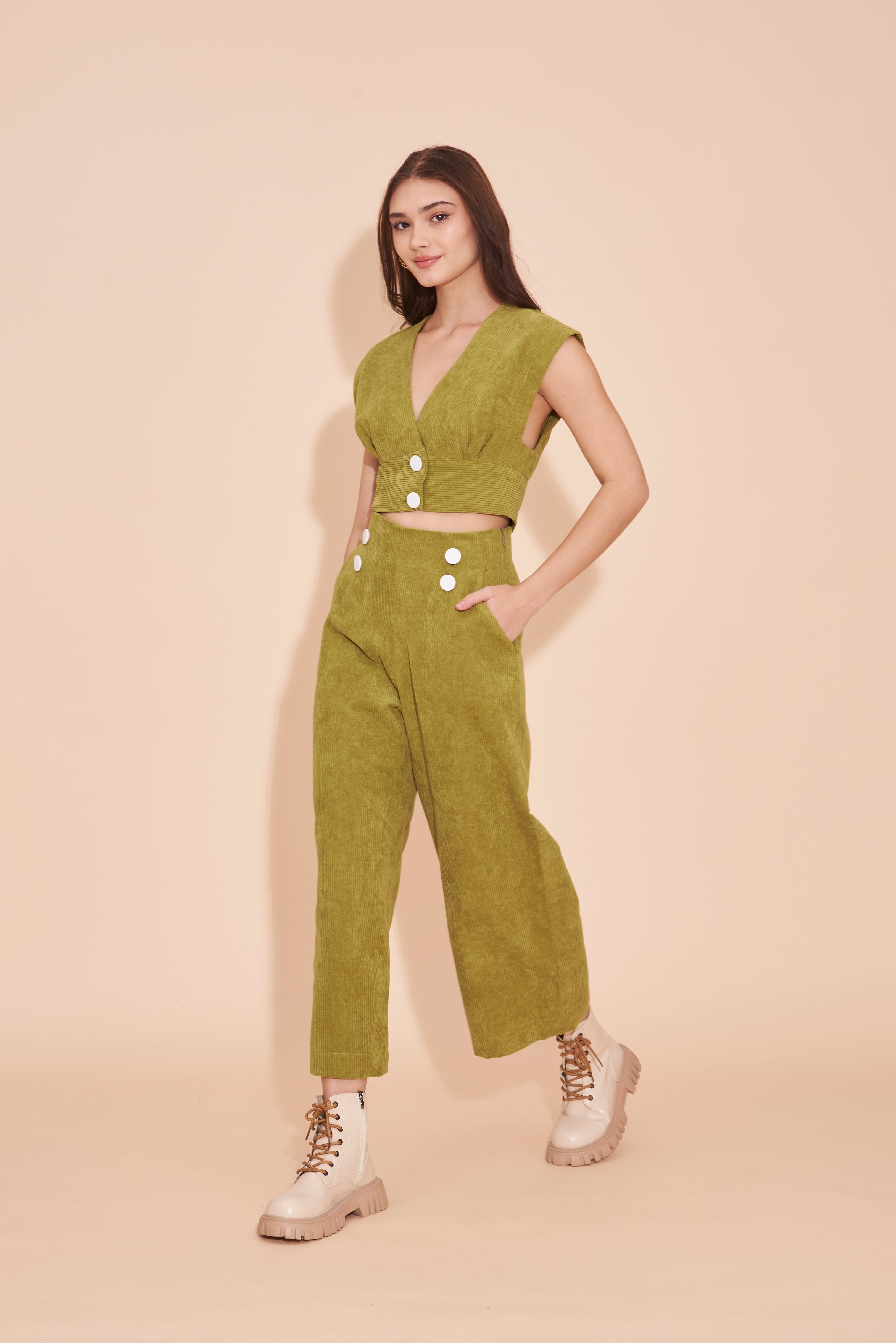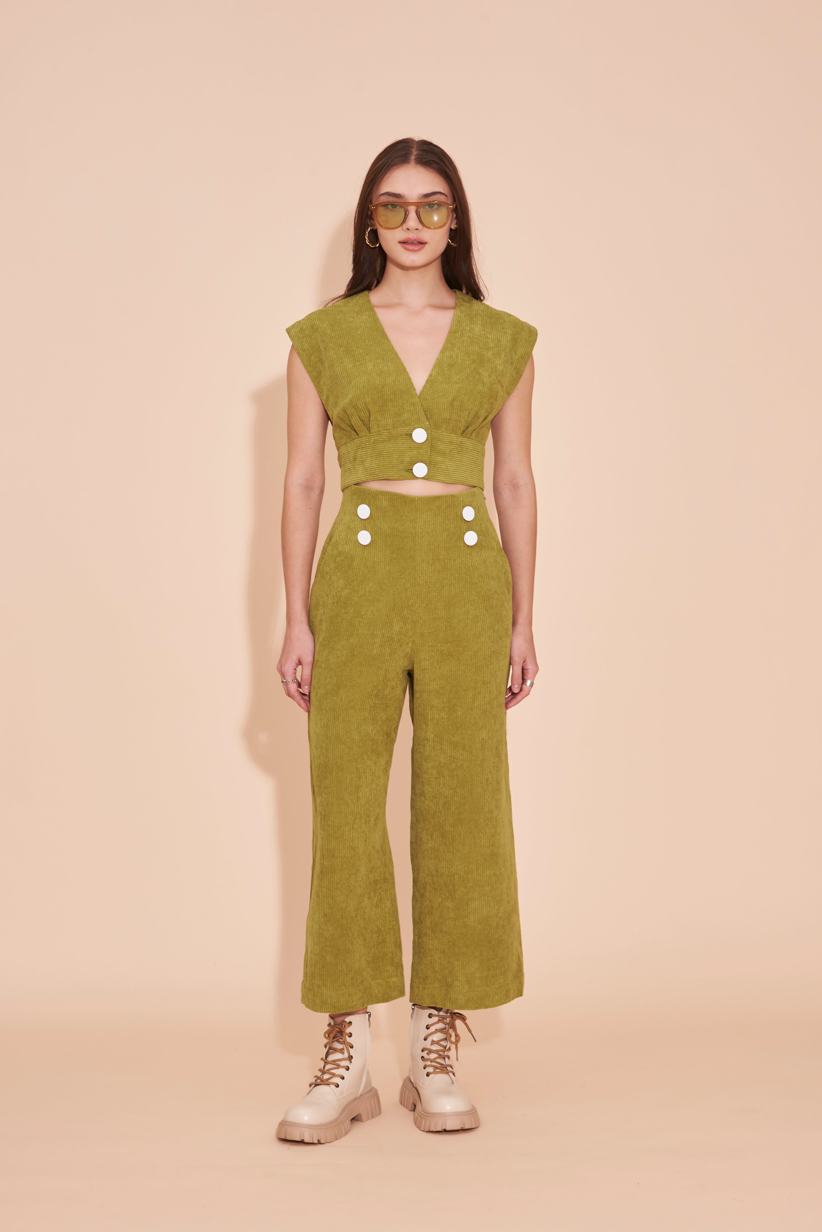 "SUNSHINE" 3/4 High Waist Culottes In Olive Green Corduroy with White Contrast Buttons