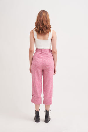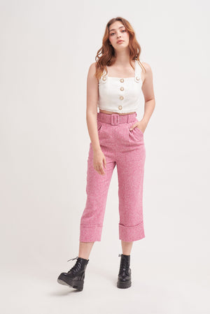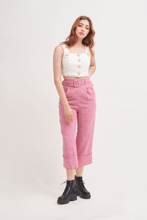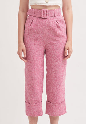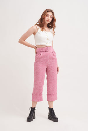 THINK OUTSIDE THE BOX | High Waisted Culottes In Pink Tweed With Belt